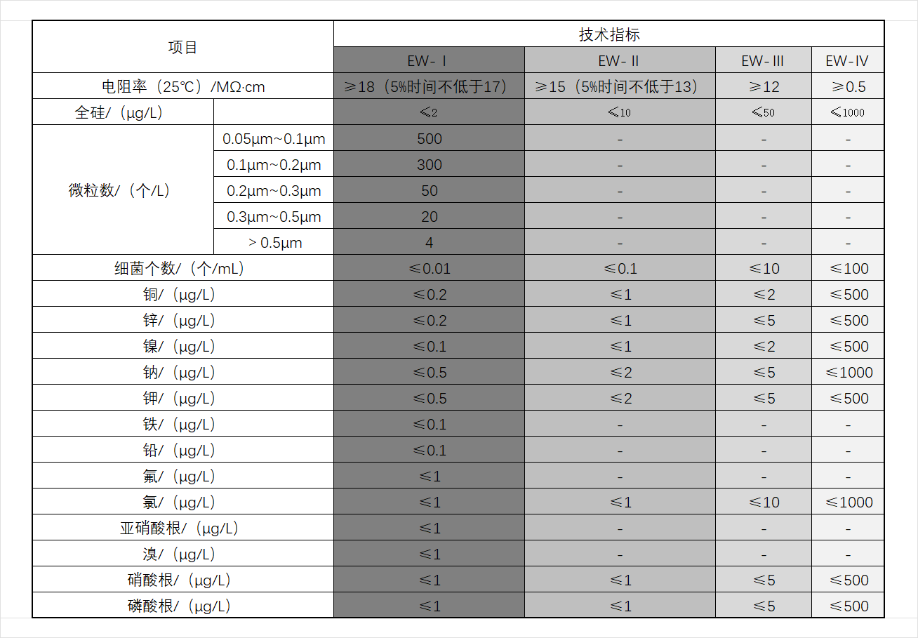 电子行业冲洗水质标准(电子级水的技术指标)
